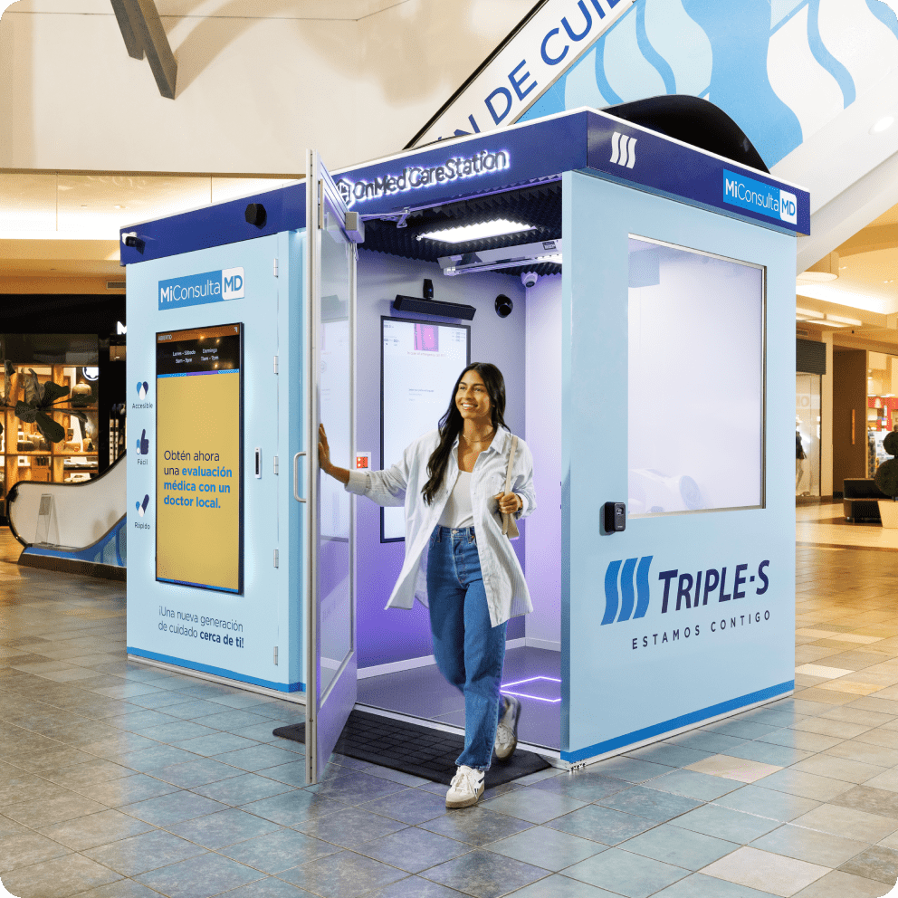 MiConsulta MD introduce una nueva era de acceso a consultas médicas, rápidas, seguras y de calidad en una estación de cuidado equipada para llevar a cabo diagnósticos a través de una pantalla que conecta a un médico de la red de proveedores de Triple-S. Permite hacer diagnóstico y salir con órdenes para laboratorios u otros procedimientos y recetas para medicamentos si fuera indicado.